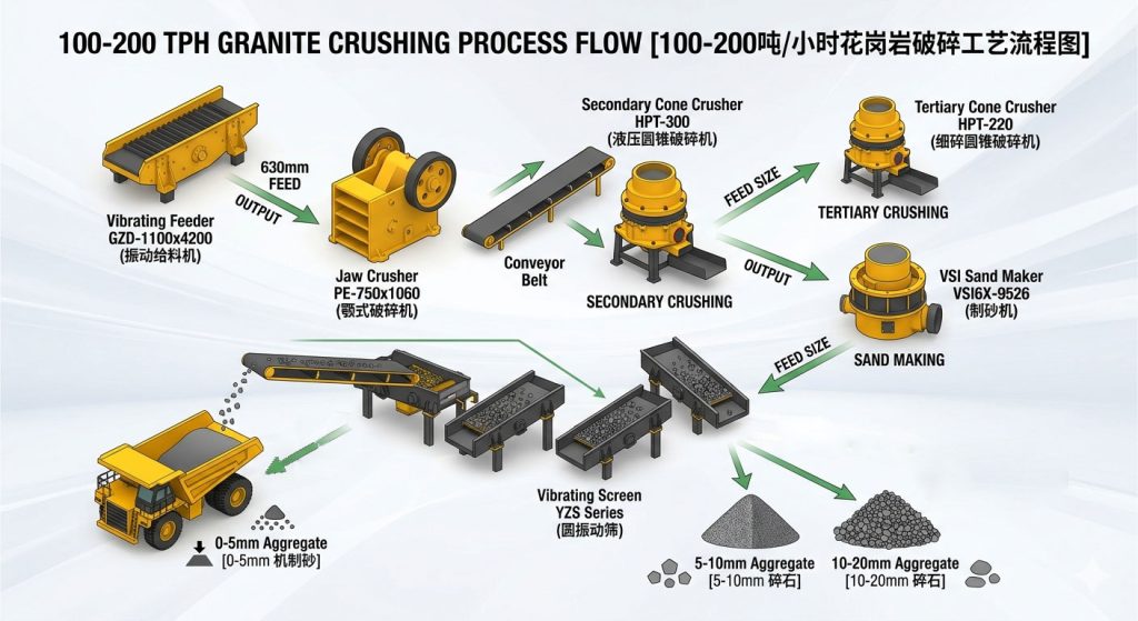 In the high-demand world of infrastructure and construction, granite remains a top-tier material due to its hardness and durability. However, its high abrasive nature poses a challenge for equipment longevity. If you are looking to process 630mm feed size into high-quality 0-5mm and 5-20mm products at a rate of 100-200 tons per hour (TPH), a specialized technical approach is required.