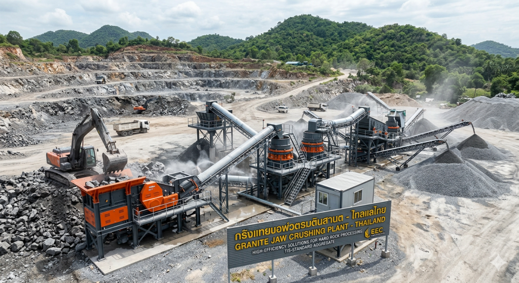 In Thailand’s rapidly expanding infrastructure sector—driven by the Eastern Economic Corridor (EEC) and high-speed rail links—Granite has become the gold standard for high-grade aggregate. Due to its high compressive strength and abrasiveness, a specialized Granite Jaw Crushing Plant is essential for producing the TIS-standard (Thai Industrial Standards) materials required for Bangkok’s skyscrapers and national highways.